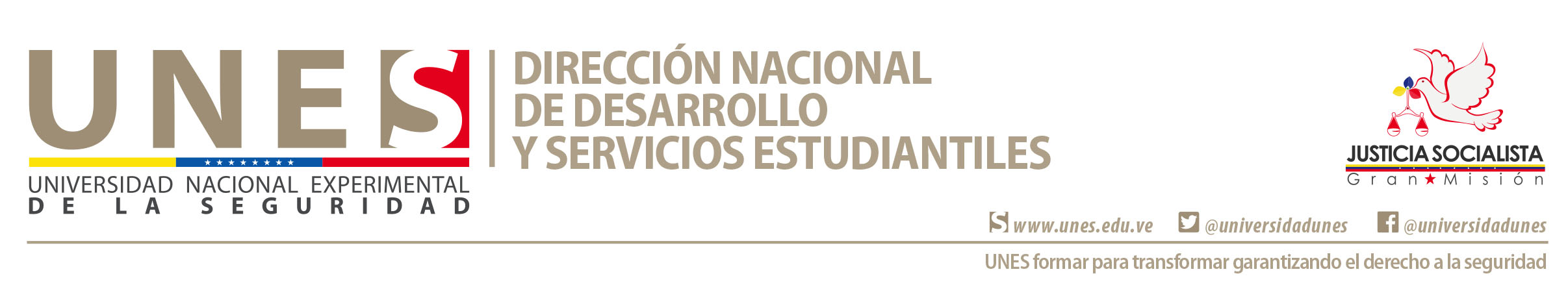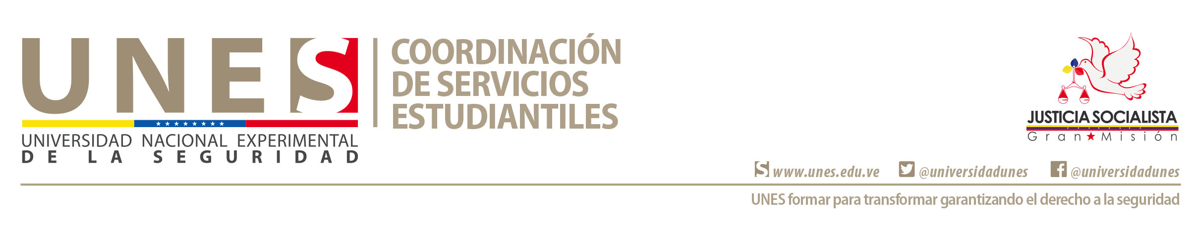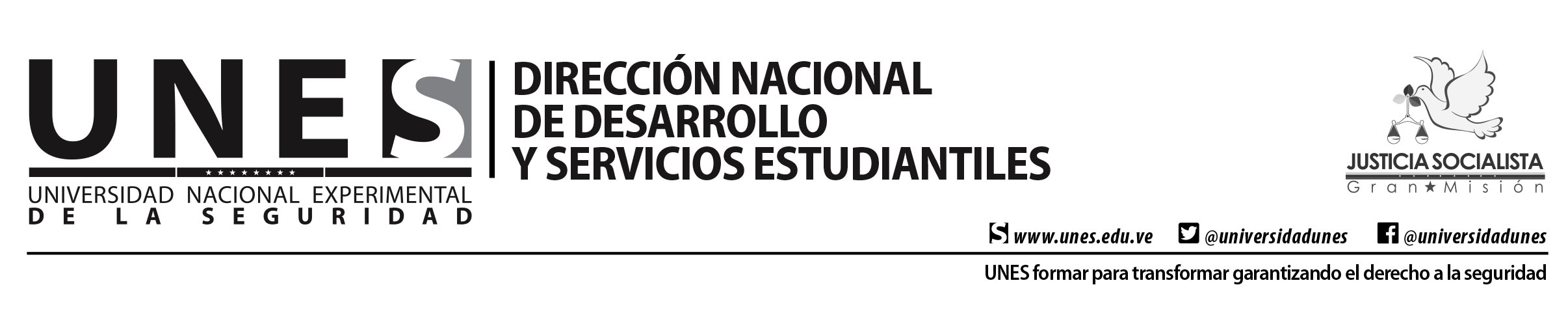Dirección Nacional de Desarrollo y Servicios Estudiantiles: Responsable de definir, organizar y administrar los Programas y Servicios estudiantiles para la atención de las condiciones socioeconómicas y de salud del estudiante de la Universidad Nacional Experimental de la Seguridad; así como la creación de programas de acompañamiento que contribuyan de manera significativa al desarrollo de la concisión humana profesional a través de los procesos de formación y capacitación de los actos involucrados.