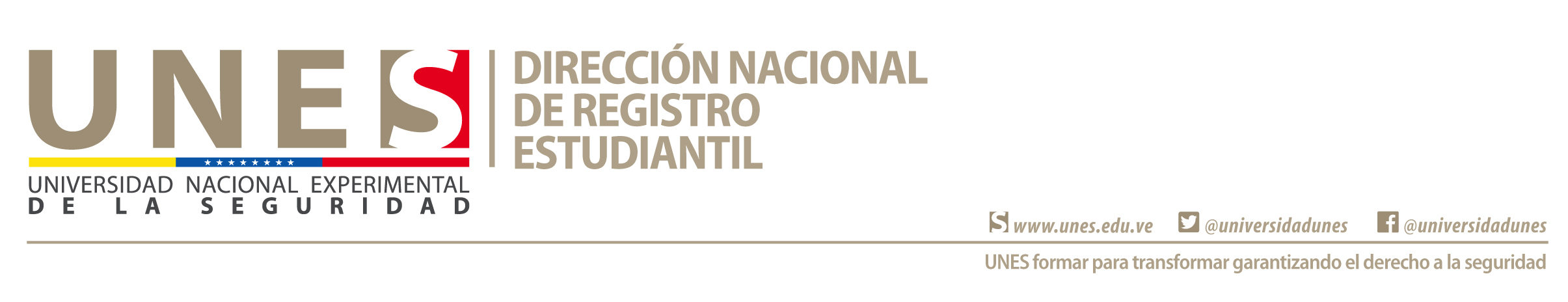 Dirección Nacional de Registro Estudiantil: Es una dependencia administrativa de carácter nacional que se encargará de planificar y establecer los lineamientos para el registro, control y tratamiento de la información relacionada con los datos personales y académicos de las y los discentes en toda la Universidad durante la prosecución de sus estudios y el egreso en cualquier nivel y modalidad de formación. Asimismo, es responsable de supervisar el funcionamiento de las Coordinaciones de Control de Estudios de los Centros de Formación, además de registrar e intervenir en el manejo de los datos académicos de los procesos formativos que se administran desde la Universidad.